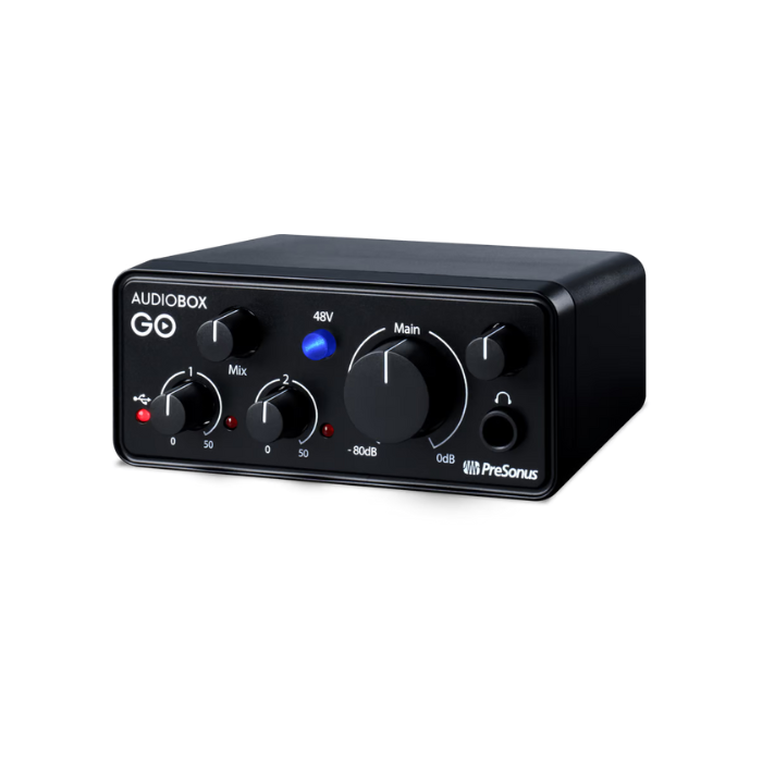El PreSonus AudioBox GO Creator Bundle es tu solución todo-en-uno y ultraaccesible para comenzar a grabar con calidad de estudio. Incluye la interfaz de audio USB AudioBox GO 2×2 / 24-bit / 96 kHz, compacta pero potente, el software Studio One 6 Artist Edition, audífonos HD7 de alta definición y diseño ergonómico, y un micrófono condensador cardioide M7 con adaptador para soporte y filtro antiviento. Todo lo necesario para crear como un profesional desde el primer día.