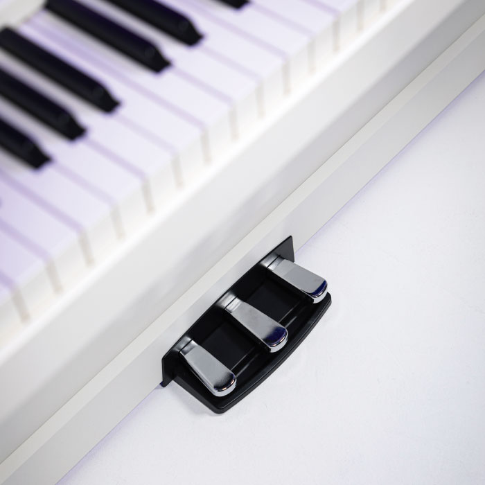 Un piano digital completo: incluye soporte y 3 pedales que replican la experiencia acústica con realismo, elegancia y versatilidad.
